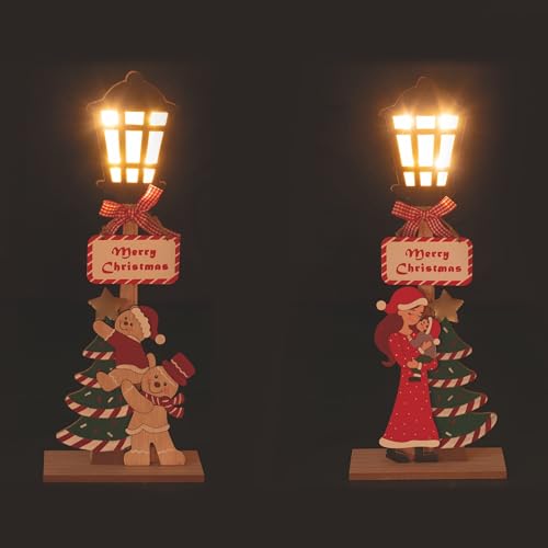 Set 2 juldekoration LED gatubelysning i trä h. 45 cm, dekoration med bokstäver, Xmas