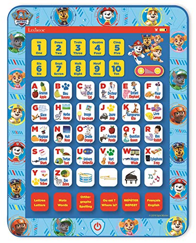 Lexibook JCPAD002PAi1 Paw Patrol Pedagogisk utbildningssida, interaktiv lärande surfplatta, leksak att lära sig alfabet bokstäver nummer ord dela och musik, engelska/franska språk, blå