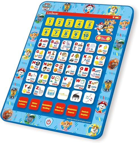 Lexibook, Paw Patrol, pedagogisk bildingual interaktiv lärande surfplatta, leksak för lärande alfabet bokstäver siffror ord stavning och musik, engelska/tyska, blå, JCPAD002PAi3