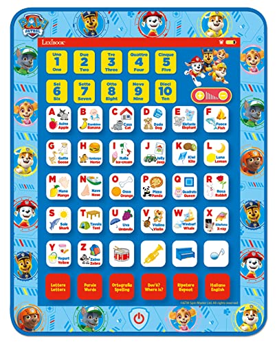 Lexibook JCPAD002PAi5 Paw Patrol Pedagogisk tvåspråkig interaktiv surfplatta, leksak för att lära sig alfabetet bokstäver siffror ord stavning och musik, engelska/italienska språk, blå