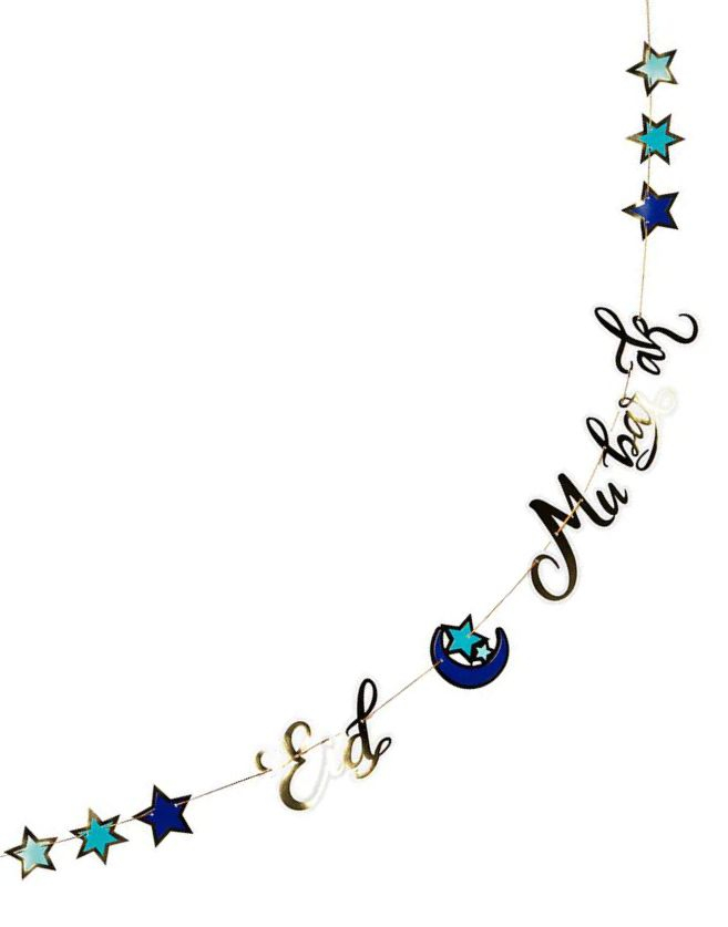 Eid Mubarak - Guldpräglad Bokstavsbanner med Stjärnor och Måne - 2,5 m