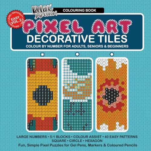 Relax Just Colour: Pixel Art Colour By Number, Decorative Tiles Volume 2: Bold Geometric Patterns with Large Print Grids for Adults, Seniors & Beginners, Colour Interior