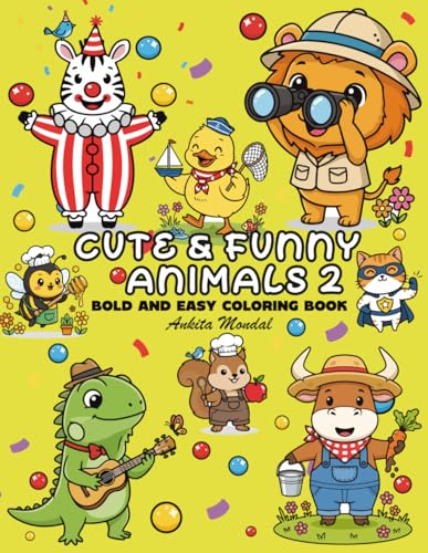 Cute & Funny Animals Book 2: Bold and Easy Coloring Book for Adults and Kids...Gifts for Birthdays, Holidays, Vacations or Relaxation