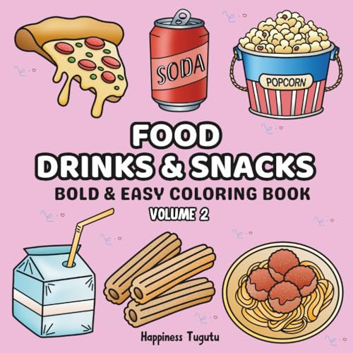 Food, Drinks & Snack Volume 2: Bold & Easy Coloring Book for Both Adults and Kids With Tons of Cute, Simple and Relaxing Designs