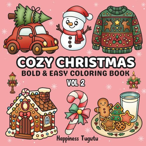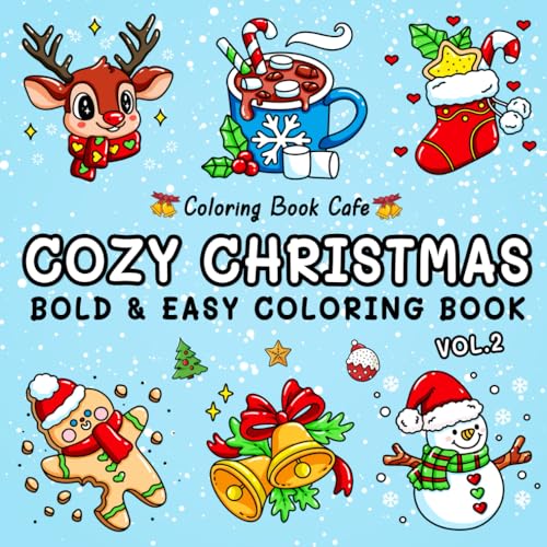Cozy Christmas Vol.2: Bold & Easy Christmas Coloring Book for Adults & Teens, Cute & Cozy Holiday Scenes for Stress Relief & Relaxation