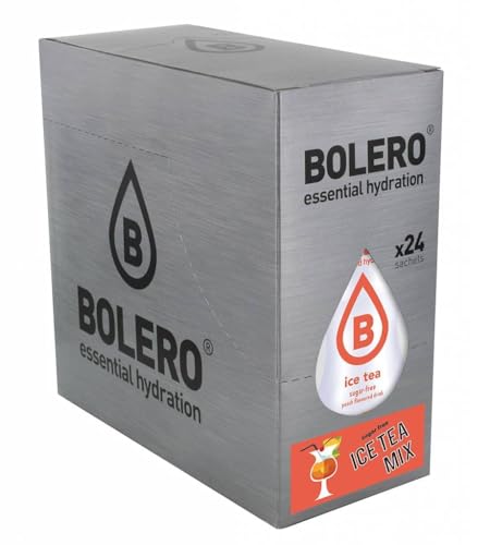 Möt Bolero Drinks ICE TEA MIX Pack | 24x9g | Uppfriskande sockerfri pulverdryck med stevia | Vitamin C | rekommenderas av diabetiker | 3 läckra smaker av iste citron, persika och passionsfrukt