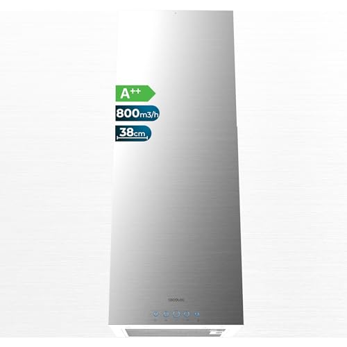 Cecotec Fläktkåpa 38 cm fyrkantig ö Bolero Flux ICT 388000 rostfritt stål A++. Rostfritt stål finish, sug 800 m3/h, motor 210 W, klass A++, 3 nivåer, kolfilter Ø176, LED-belysning