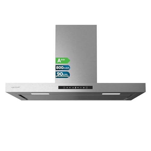 Cecotec Fläktkåpa Bolero Flux TT 908000. 90 cm fläkt, rostfritt stål, 800 m³/h, motor 210 W, klass A++, pekskärm glas svart, 3 nivåer, kolfilter.