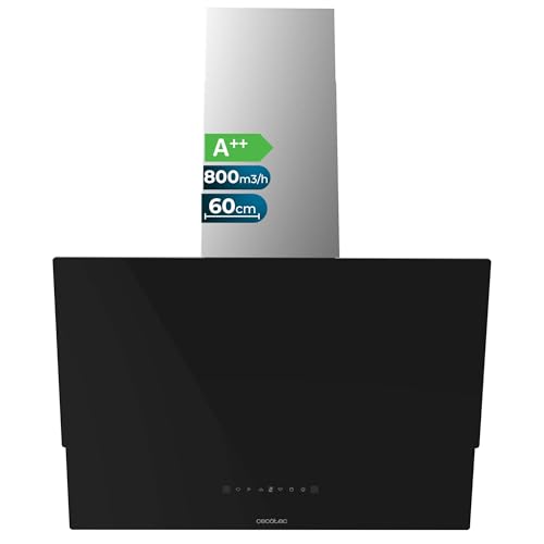 Cecotec Dekorativ lutande fläkt 60 cm Bolero Flux DT 608010 glas svart A++ svart glasfinish, sug 800 m3/h, 210 W, klass A++, 3 nivåer, kolfilter, automatisk öppning