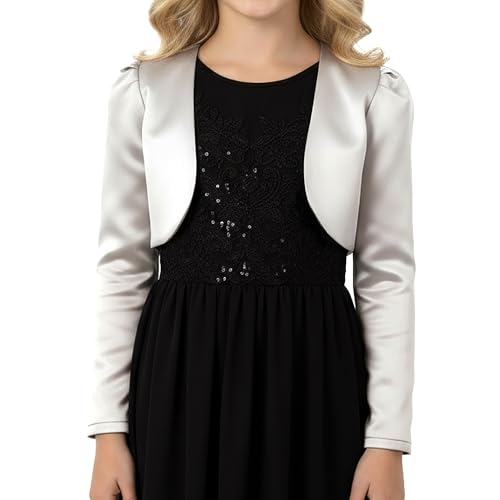 BlackButterfly Barn Siden Lång Ärm Bolero Flickor Kort tröja (Silver, 13-14 År)