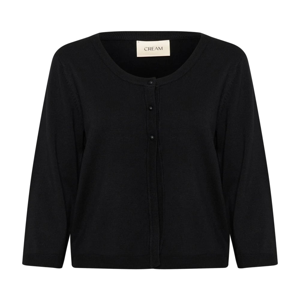 Cream, Stickade Tröjor , Dam, L, Svart Bolero Cardigan med ¾ Ärmar