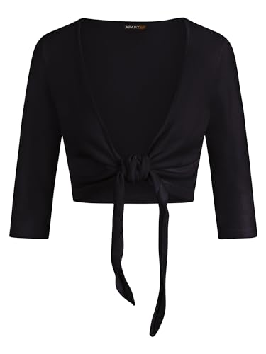 KOJOOIN Bolero kort kofta för kvinnor, festlig kort kofta, elegant axeljacka (återanvändbar förpackning), A-svart, S