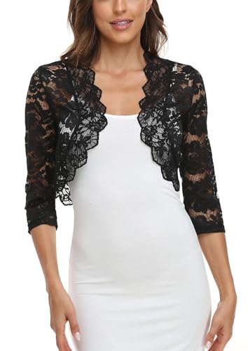 MISS MOLY Bolero spets jacka för kvinnor, festlig kort kofta 3/4 ärm, kofta för bröllop, cocktailklänning, svart, 36