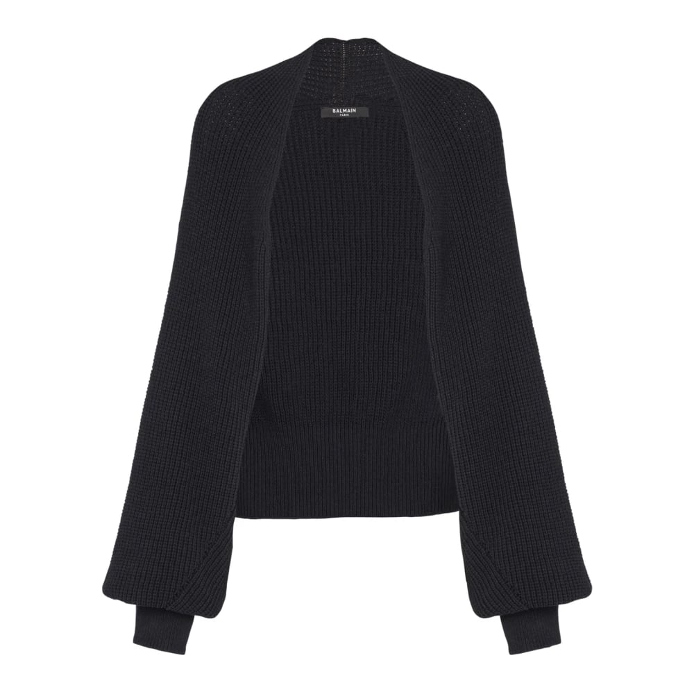 Balmain, Stickade Tröjor , Dam, L, Bomull, Ribbstickad Bolero Cardigan