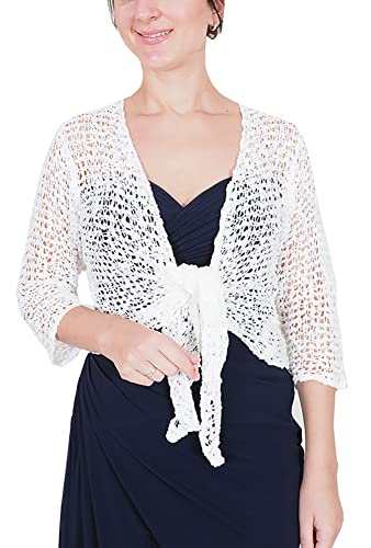 Irevial Bolero, dam, festlig, elegant, kort kofta, bolerojacka, axeljacka, jacka för aftonklänning, bröllop, 3/4 ärmar, Vit, M