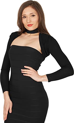 Gloop Damer vackra, eleganta bolerojacka långärmad bolero med knut, svart, M