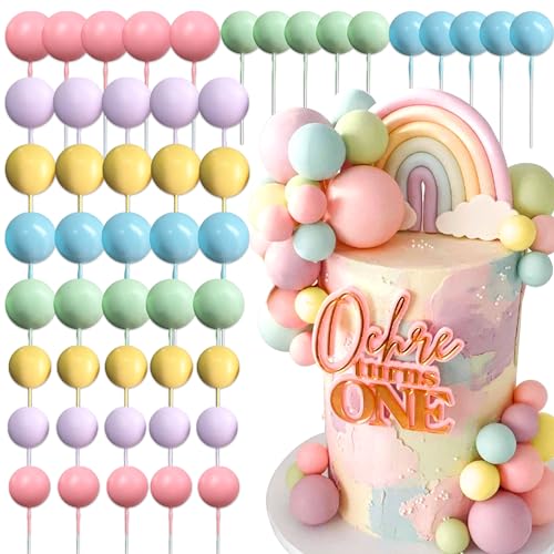 JeVenis 50 st Macaroon regnbåge boll tårttoppers färgglada regnbågstårtdekorationer pastellfärgade bollar cupcake toppers för födelsedag baby shower bröllopsfest