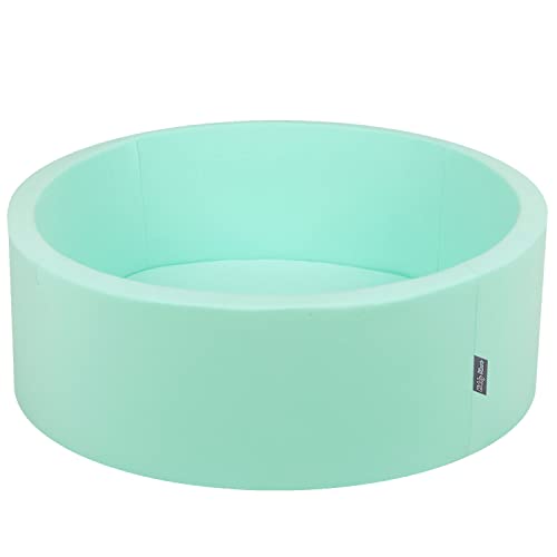 KiddyMoon 90 x 30 cm/ingen boll boll boll baby lekbad rund Made in EU, mynt: ljus turkos/vit/transparent