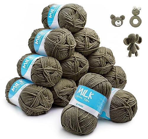Baby stickgarn 12 x 50 g/boll, 100 % akryl snabbstickat garn för nybörjare och barn, noppfri babygarn för stickning och virkning, mjuk och lättskött babyull för hantverk (Verde Militär)
