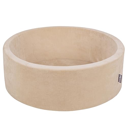 KiddyMoon mjuk rund 90 x 30 cm inga bollar skum sammet boll pool baby lekbollar, sandbeige
