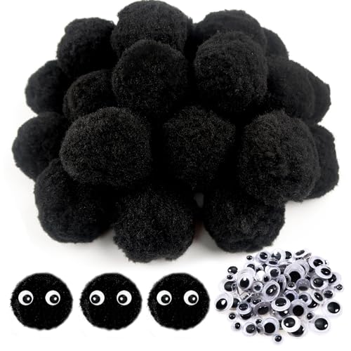 TOAOB 50 st pompoms boll 50 mm stora fluffiga pompoms svarta luddiga pompoms bollar med 100 st viklögon för gör-det-själv-hantverksdekorationer