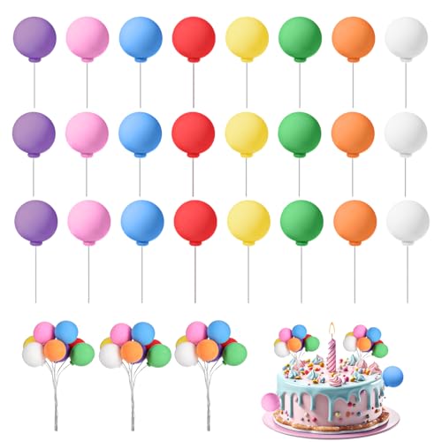 Tyqour 24 st färgglada ballonger tårtdekoration tårtbollar dekorationer boll tårtdekorationer gör-det-själv tårtballonger infoga topp för födelsedag baby shower bröllopsfest tårtdekorationer