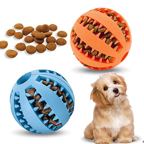 Vordpe 2 st interaktiv behandlingsdispenser hundleksaker boll, leksak gummiboll för valp små hundar tristess tänder rengöring IQ träning (6 cm, blå, orange)