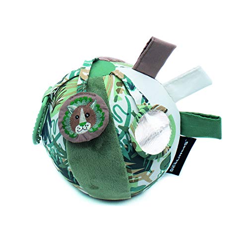 LES DÉGLINGOS Baby skallra boll • Lejonet jekros | Uppvaknande spel | Babyaktiviteter | Mjukt tyg | Barngåvor | Från födseln | Återvunnen stoppning