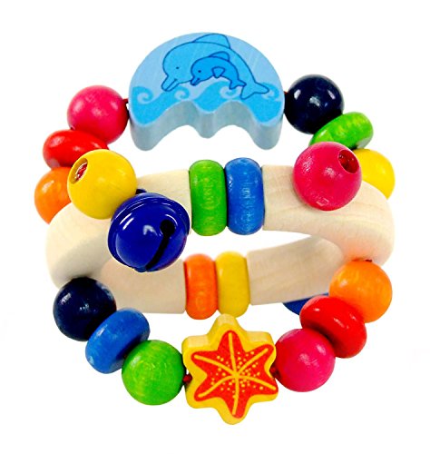 Hess Holzleksak 11026 – motorikkrassel av trä i form av en boll, motiv delfin, med rörliga delar, för spädbarn från 6 månader, handgjord, för greppupplevelser och glad skallra kul