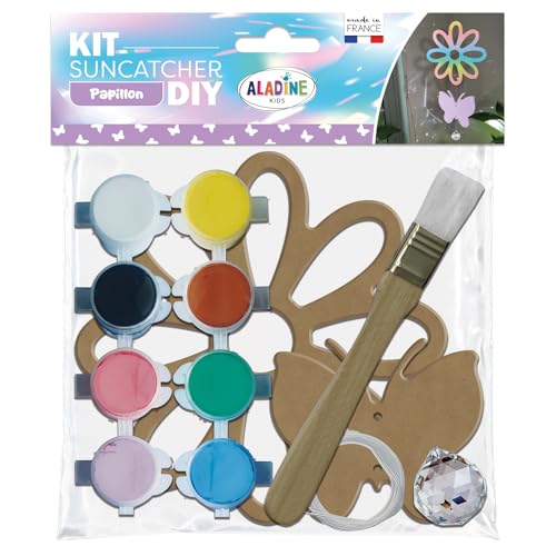 Aladine - Fjäril Suncatcher Kit - drömfångare - kreativt fritidskit - träform + borste + 8 målningar + snöre + genomskinlig boll - 85619