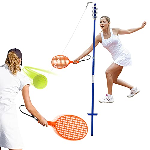 COSTWAY Höjdjusterbart tetherbollset i 3 steg, Twistball set inkl. boll | 2 racketar | 120 cm snöre, tennisboll på snöre, tennisspel för solo och lag