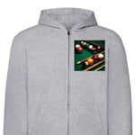 Huvtröja med Dragkedja | Zip-Hoodie för Vuxen Pool biljard bollar snooker 8 boll spel grönt bord sport bar retro design klassiskt spelrum affisch