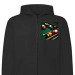 Barn Zip Hoodie | Varm och Stilren hoodie med dragkedja Pool biljard bollar snooker 8 boll spel grönt bord sport bar retro design klassiskt spelrum af