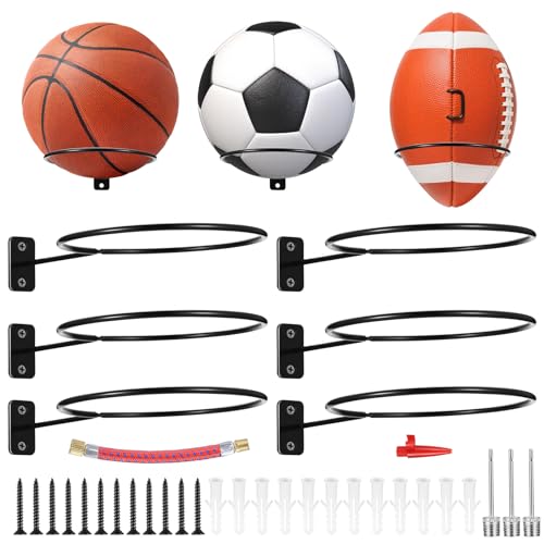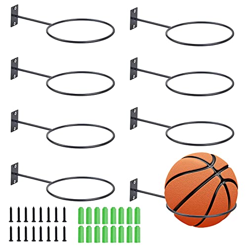 SVUPUE Väggfäste bollställ, 8 stycken monterad bollvägghållare, med 16 skruvar och 16 expansionsrör, för basket fotboll och rugby, svart bollhållare