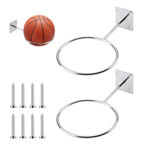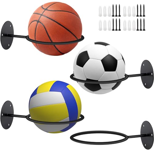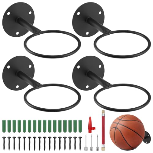 HTRTRR 4 stycken väggbollhållare, bollhållare i metall, väggfäste för basket, fotboll, volleyboll, rugby, bollställ med 12 skruvar