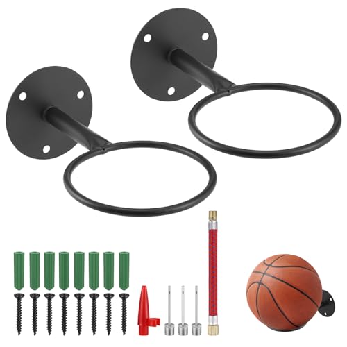 YunBey 2 stycken bollhållare vägg metall väggfäste bollställ display bollstativ bolldekoration tillbehör för basket volleyboll fotboll rugby (svart)