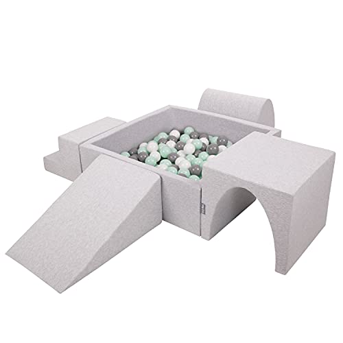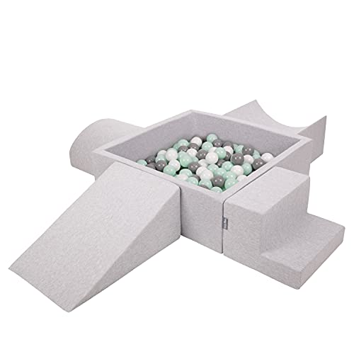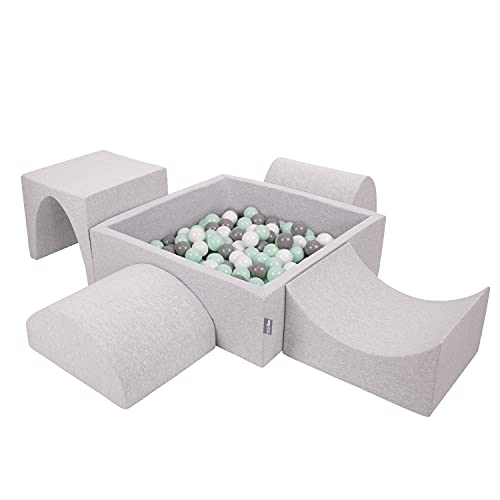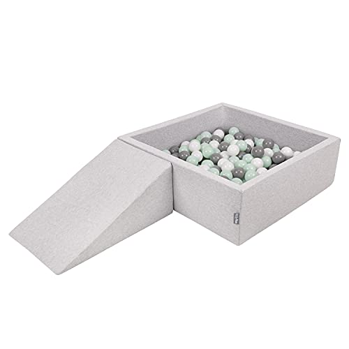 KiddyMoon Skumlekplats för barn med fyrkantigt bollhav (200 bollar), ljusgrå: vit / grå / mint