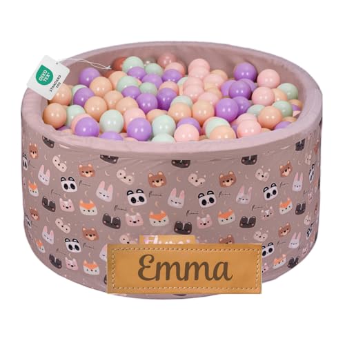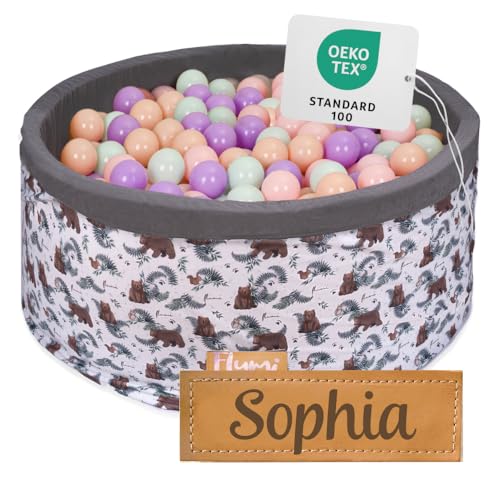 Flumi Personlig Bollhav för barn från 1 år - Skumboll 90x40cm med 200 spelbollar 7cm tillverkad i EU - Oeko-TEX- och CE-certifierad (med björnar)