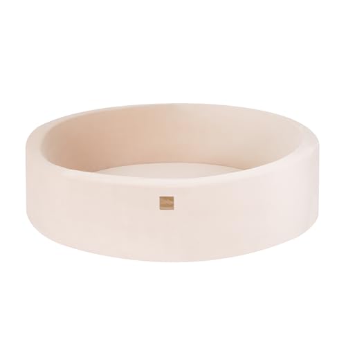 MEOWBABY Rund Bollhav för Barn 120x120cm - Bollpool utan Bollar, Sammet, Ecru