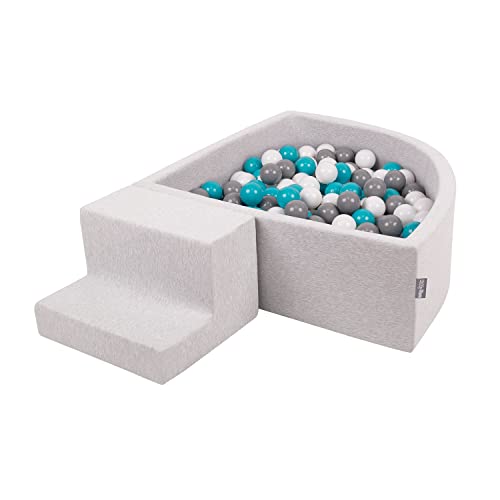KiddyMoon Skumlekplats för barn med kvartal vinklad bollhav (200 bollar) hinderbana, ljusgrå: grå/vit/turkos