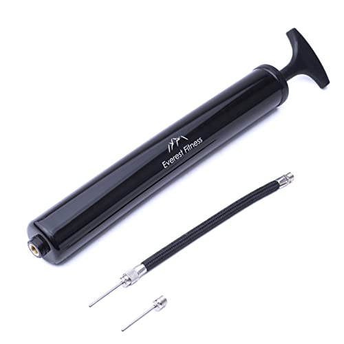 EVEREST FITNESS bollpump, svart, med luftslang och reservnål | Avsluta luftpump för pumpning eller tryck | 5-pack reservnålar kan beställas separat