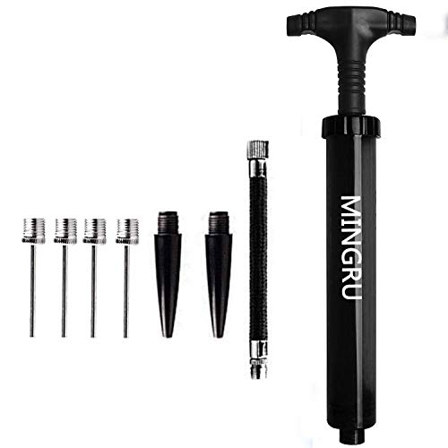 MINGRU Dubbel actionbollpump för basket, fotboll, volleyboll, rugby, vattenpolo boll och andra uppblåsbara luftpump, nålar och munstycken ingår (bollpump svart - 1 paket)