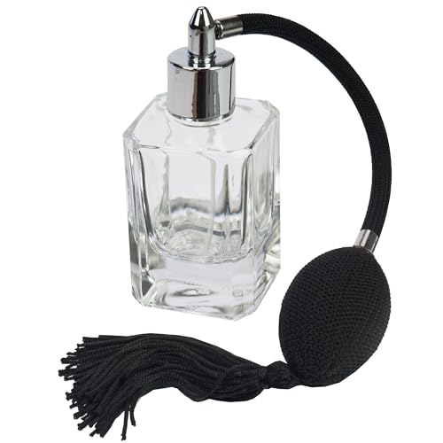 Parfymsprejflaska med bollpump: 100 ml vintage parfymflaska av glas i svart – parfymflaska tom – parfym sprayflaska – Fantasia parfymflaska