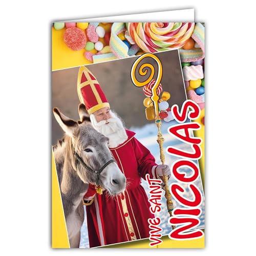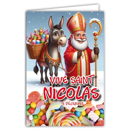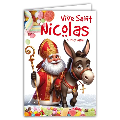 68-1337 kort med levande kuvert Saint Nicholas med sin grå åsna 6 december, god skolbarndag, kloka barn som samlarbilder för pojkar, flickor, bomber - tillverkad i Frankrike