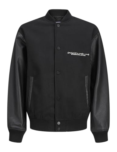 JACK&JONES JUNIOR Jjwarrior College Bomber Jnr jacka, Svart/detalj: vit logotyp + fast band, 140
