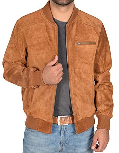 Herr äkta mocka bomberjacka anpassad klassiska färger svart brun marinblå solbränd, Brun, M