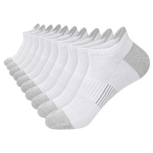 AOOSU Sneakers strumpor kvinnor män, 5 par vandringsstrumpor korta sportstrumpor bomull löparstrumpor andas korta strumpor med medelstark stoppning, fritidsstrumpor för vandring utomhus, vitgrå, 39-43
