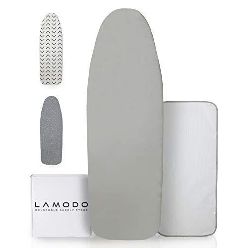 lamodo - Strykjärnsöverdrag 125 x 45 cm för ångstrykjärn av 100% bomull med extra tjock stoppning med strykhandduk - elastisk och spännare - L