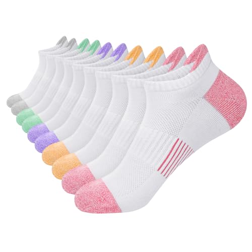 AOOSU Sneakers strumpor kvinnor män, 5 par vandringsstrumpor korta sportstrumpor bomull löparstrumpor andas korta strumpor med medelstark stoppning, fritidsstrumpor för vandring utomhus, flerfärgad