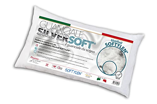 V.I.P. Very Important Pillow Kudde SILVERSOFT avtagbar klädsel med dragkedja, Fiber Ball-stoppning "SOFTYLEN, allergisk, Tvättbar, 50 x 80, Vit, örngott 100% Bomull